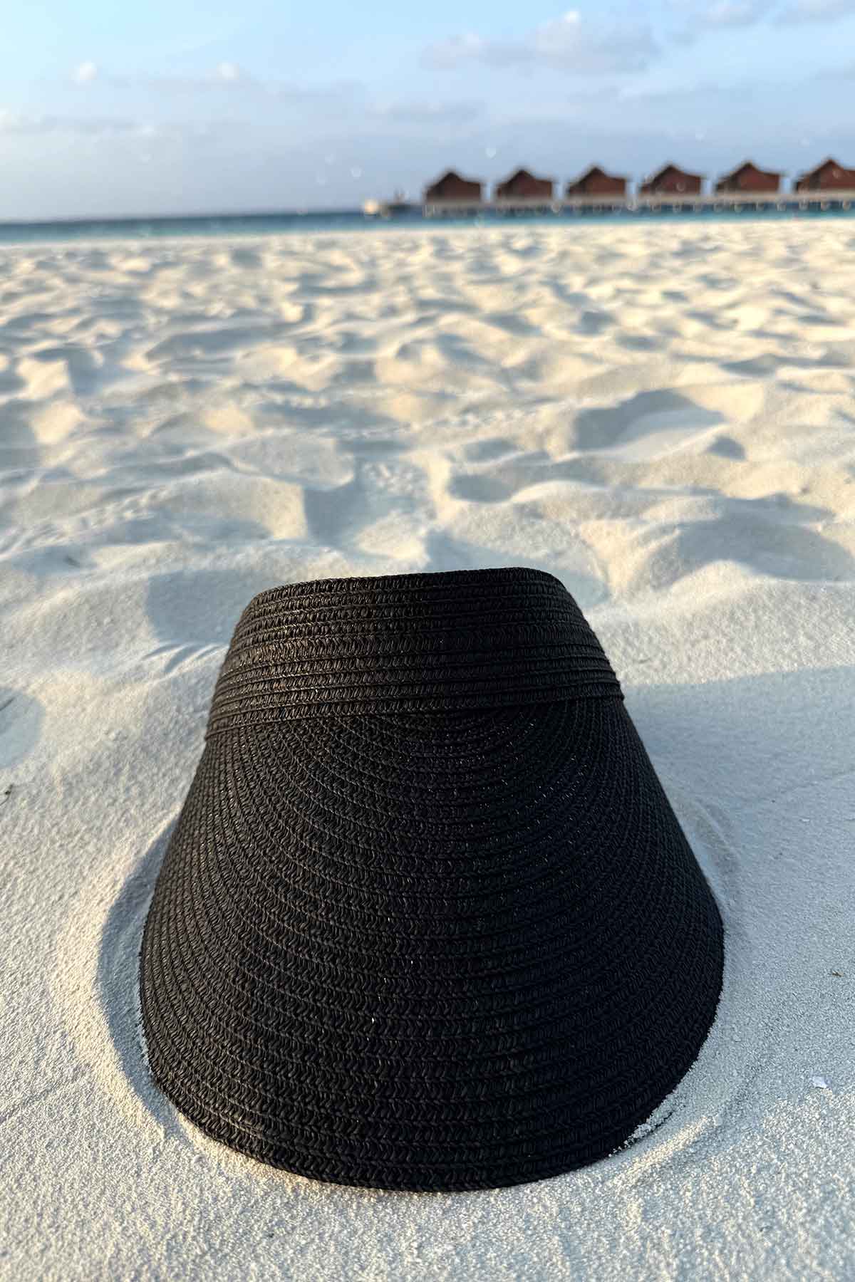 Adjustable Straw Visor Hat - Black
