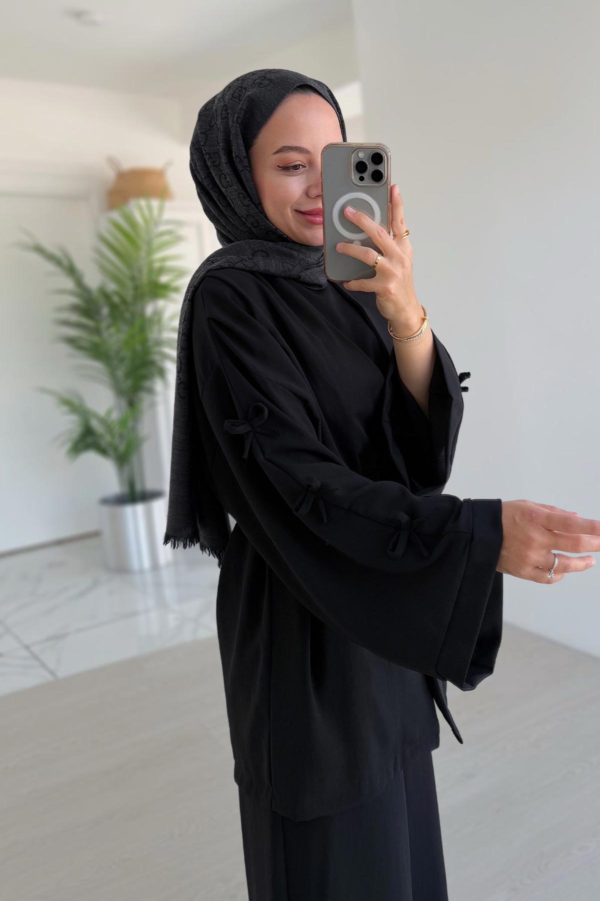 Product Features :Three Piece Suit with Bow Detail on Sleeves
