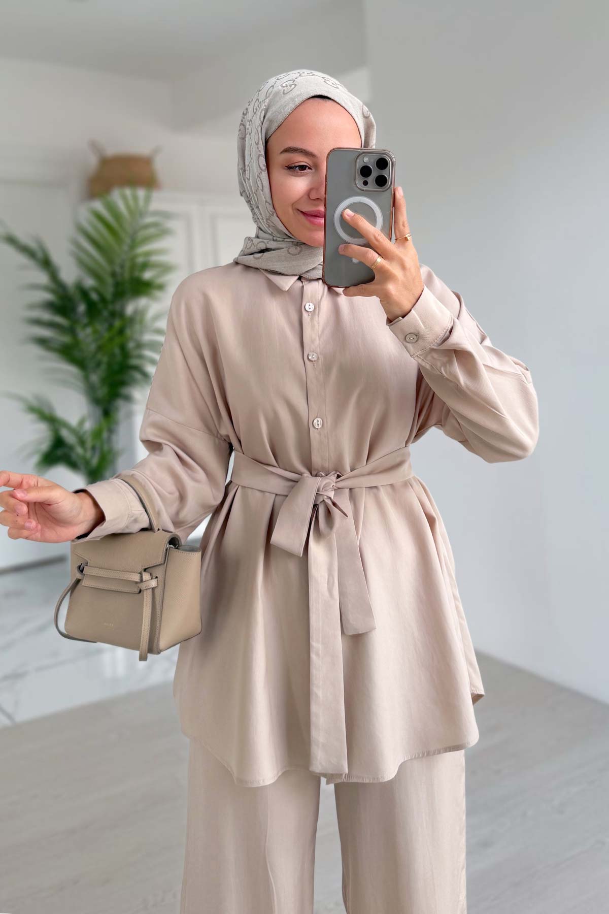 Girdle Detail Draped Double Suit - Beige