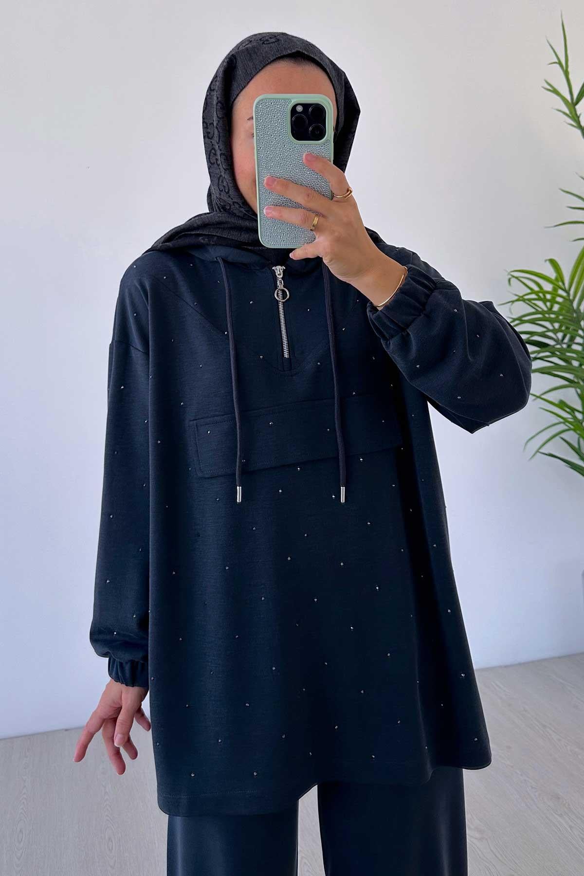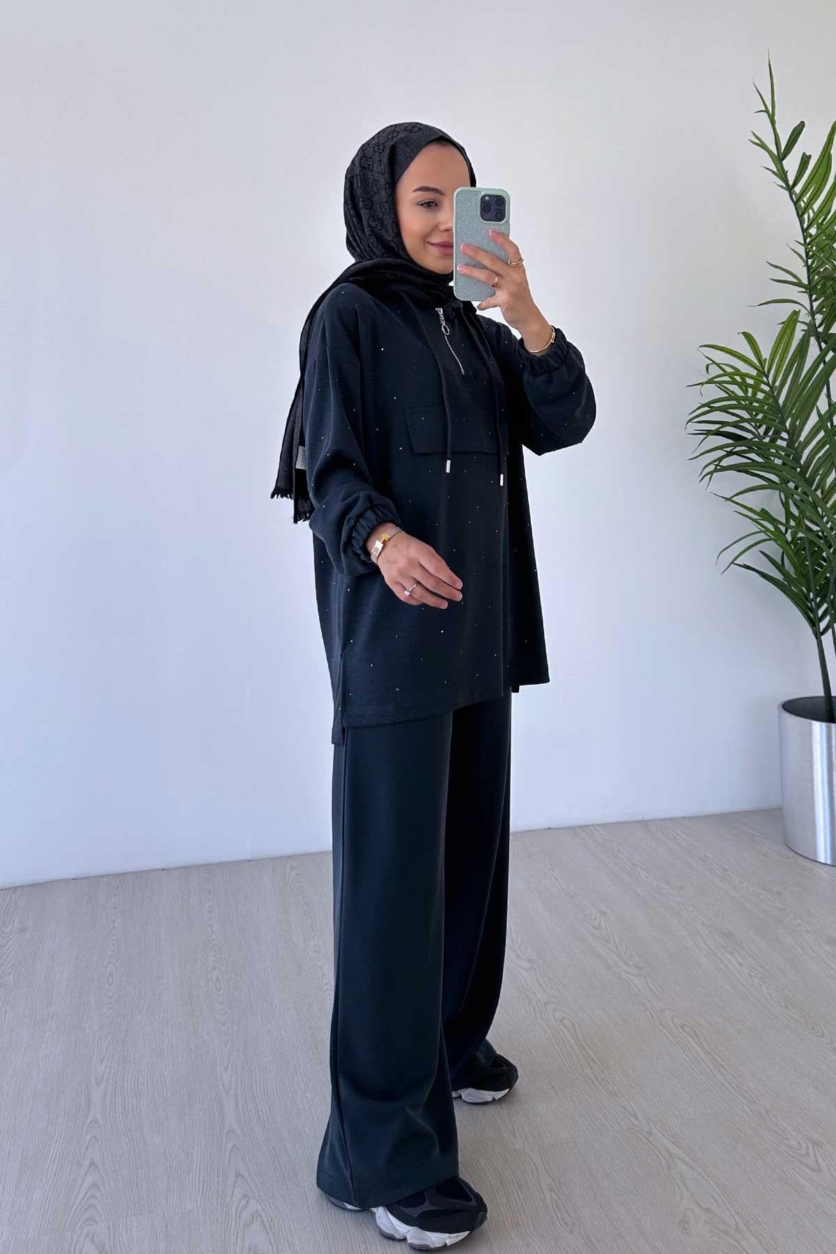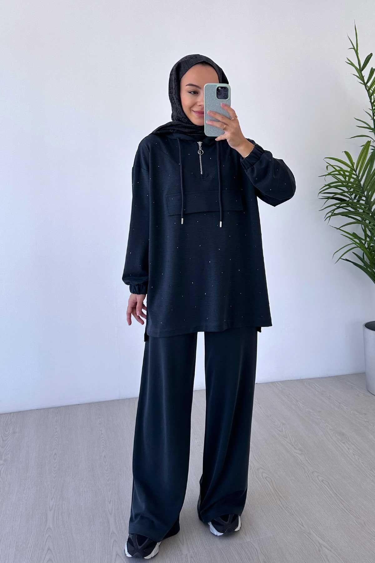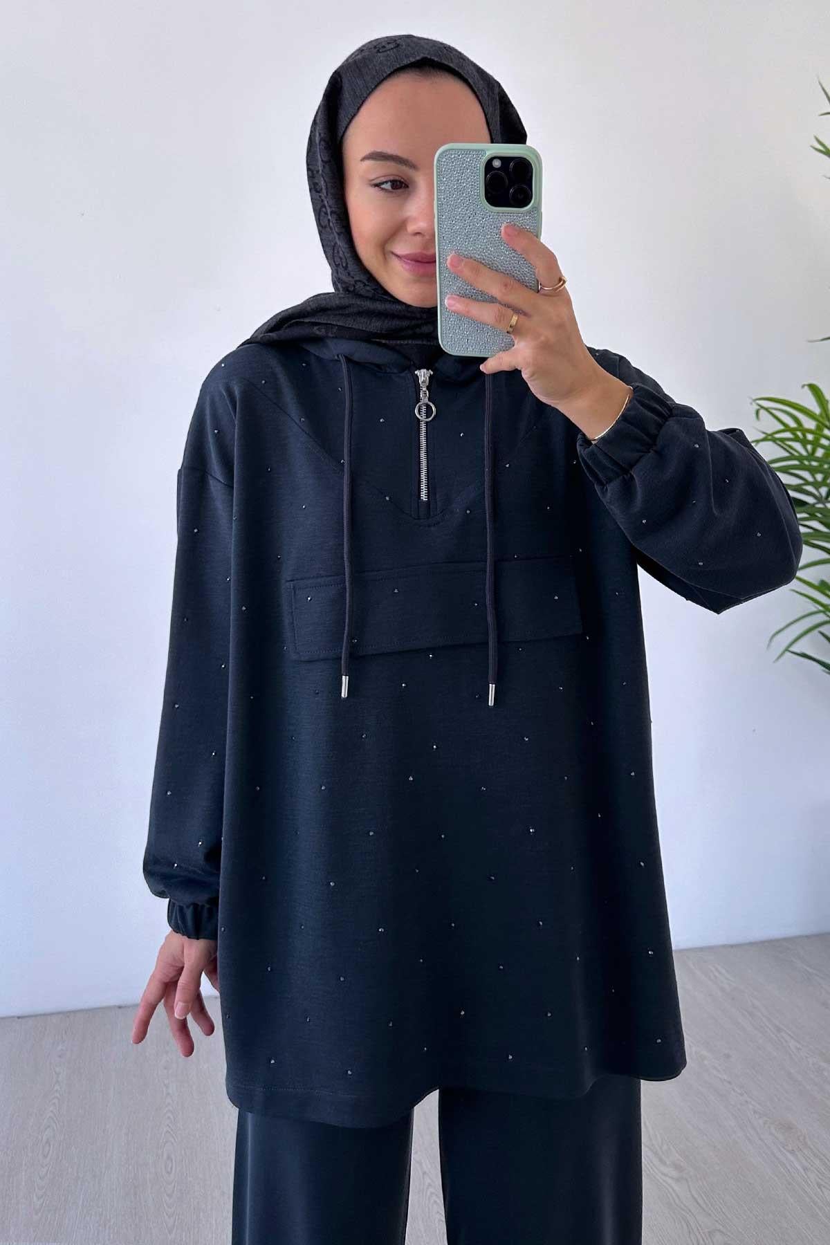 Oysh Fabric Double Set with Front Stone - Anthracite