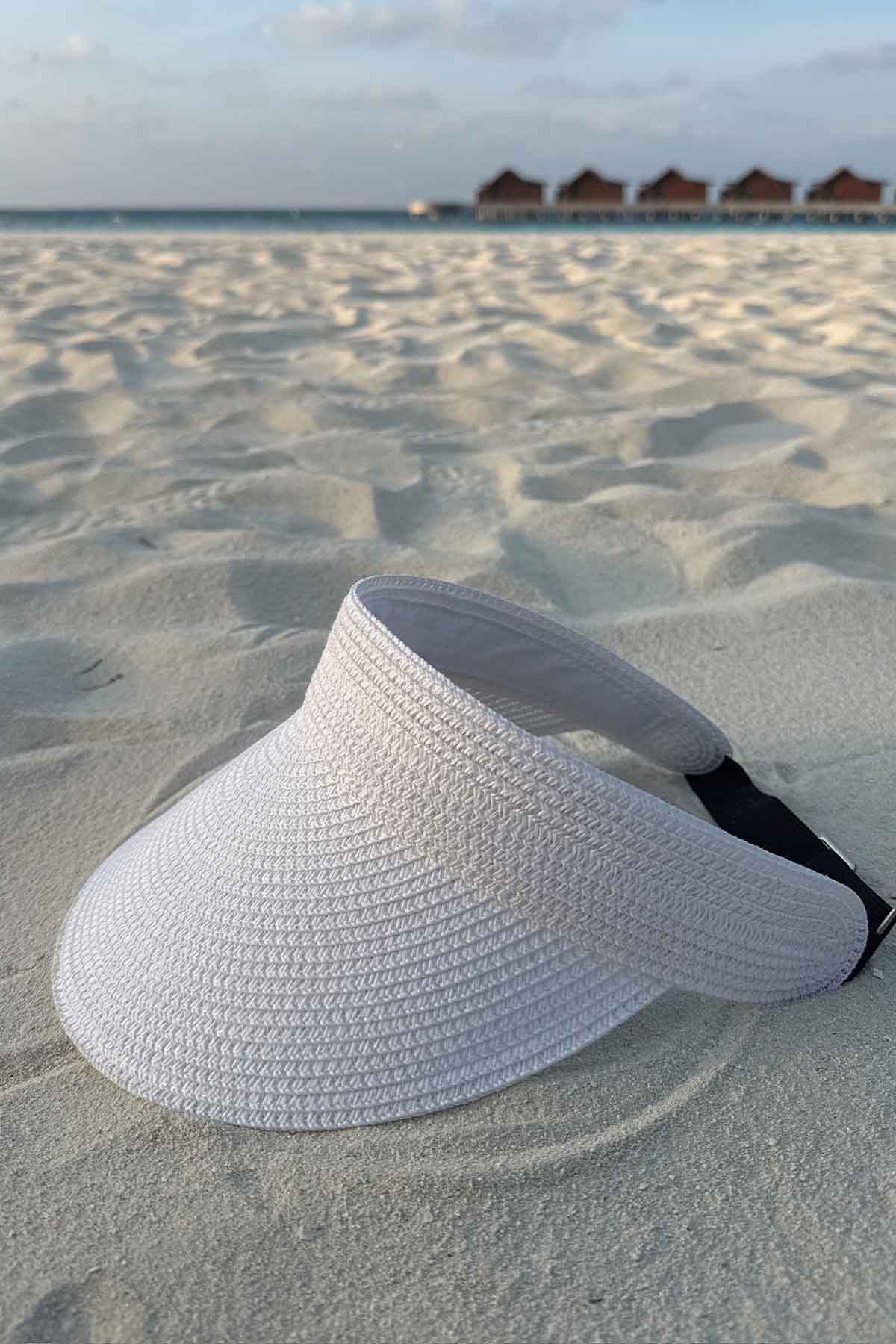 Adjustable Straw Visor Hat - White