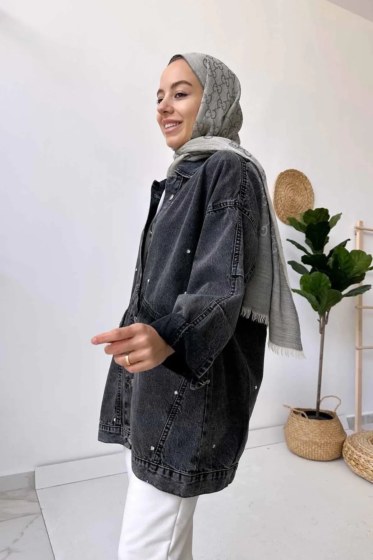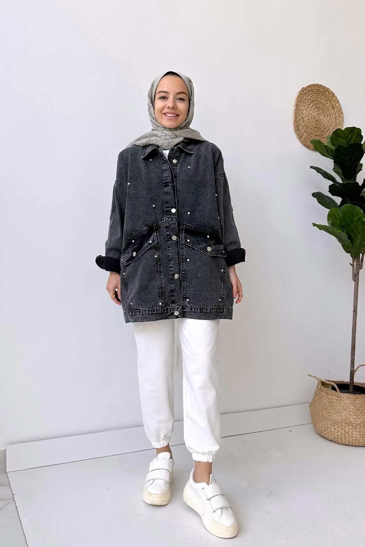 Product Features : Double Pocket Stone Denim Jacket - Blue