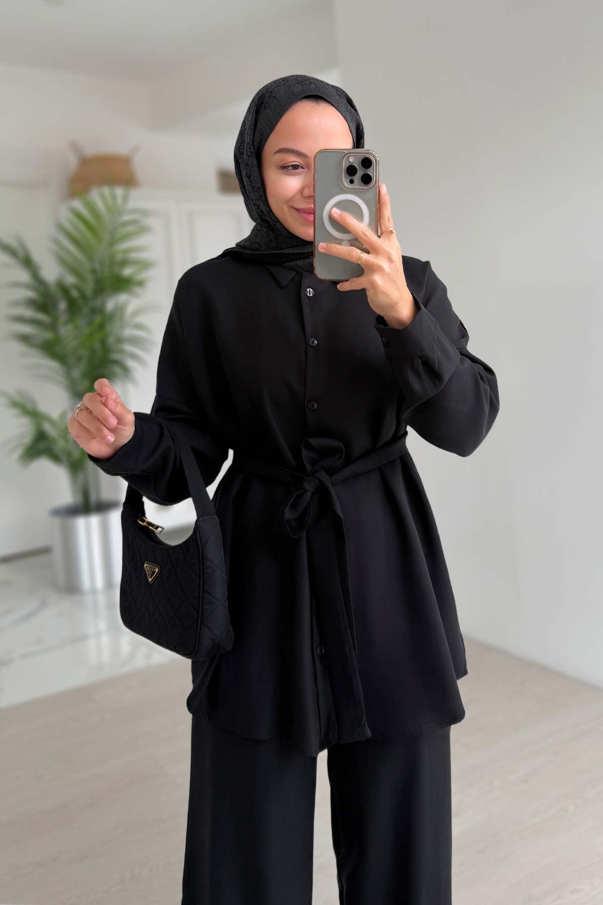Girdle Detail Draped Double Suit - Black