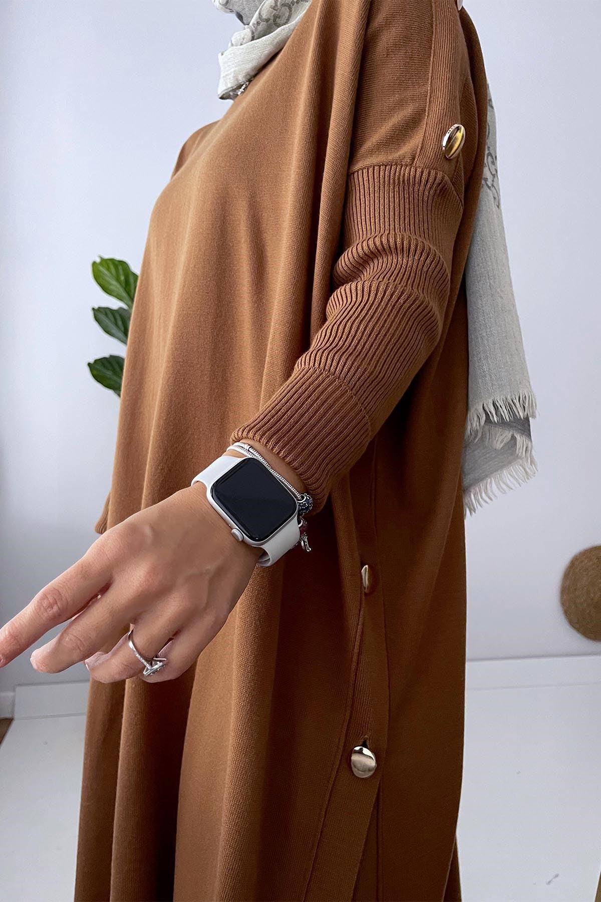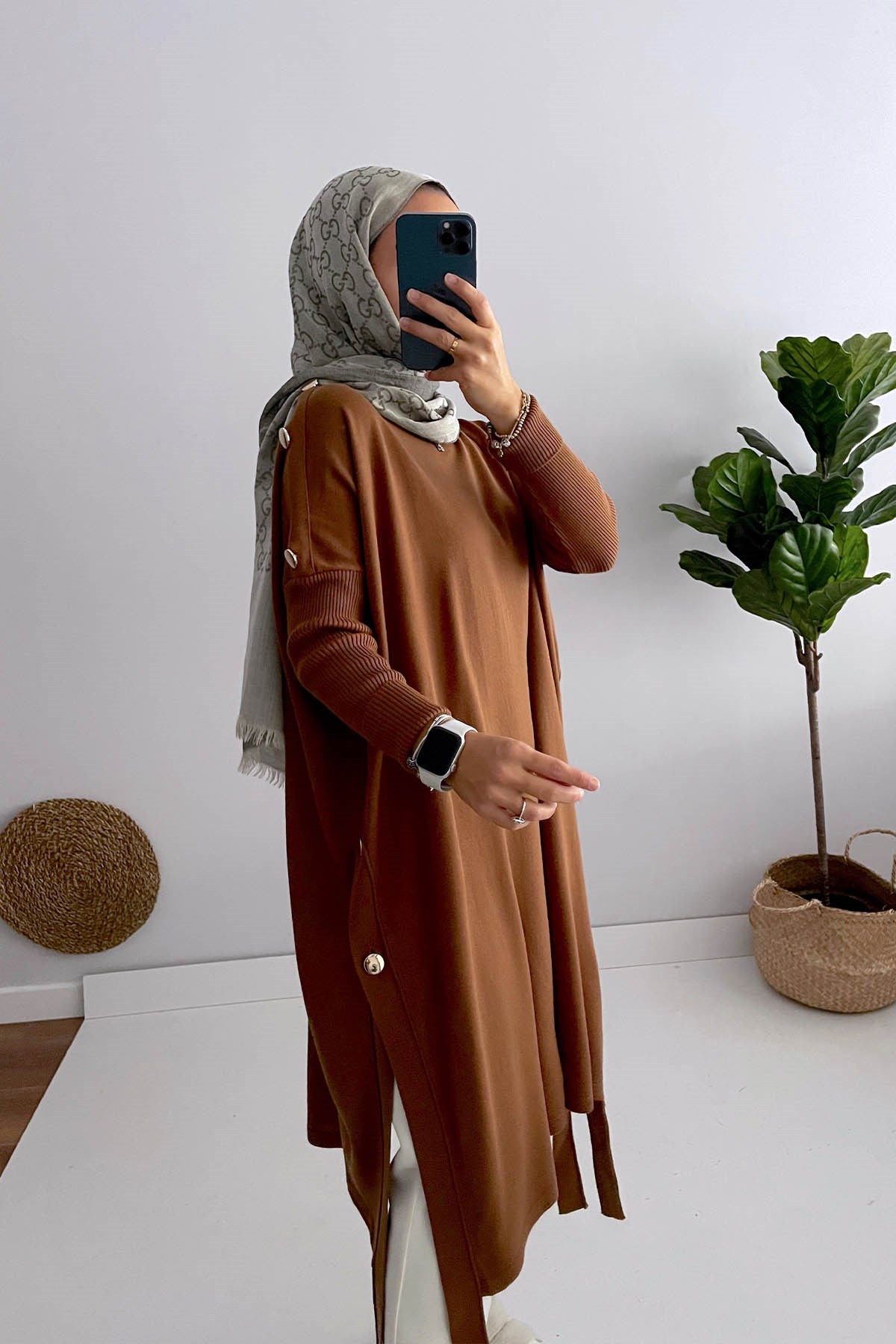 Product Features : Women's Hijab Tunic with Side Buttons, Standing Collar