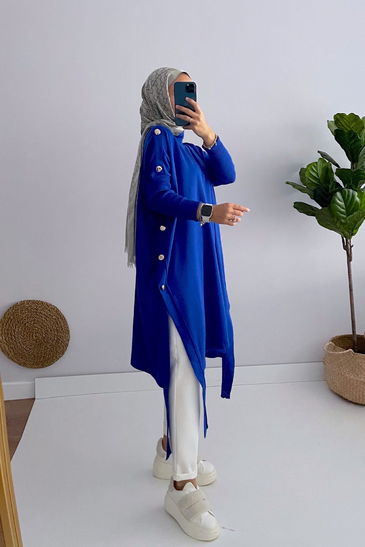 Product Features : Women's Hijab Tunic with Side Buttons, Standing Collar