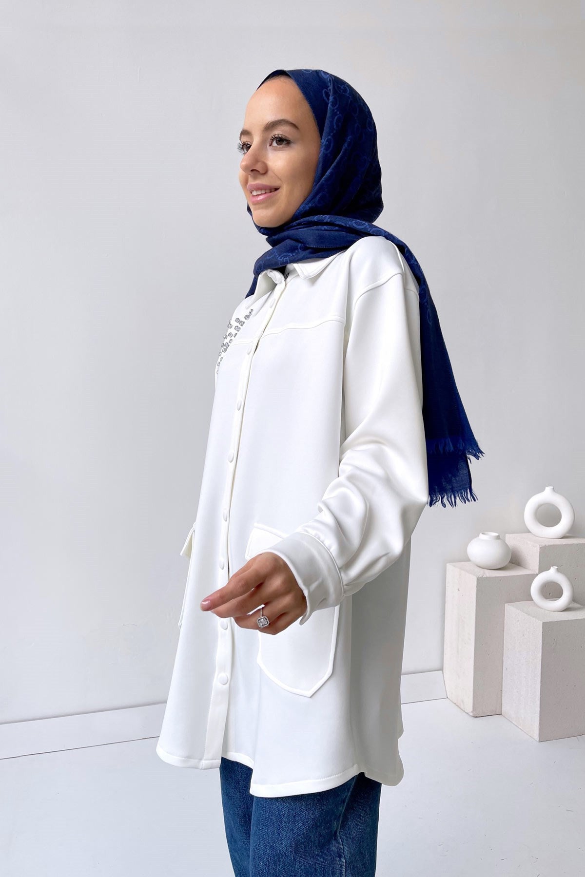 Product Features: Studded Women Hijab Scuba Jacket with Snap Closure