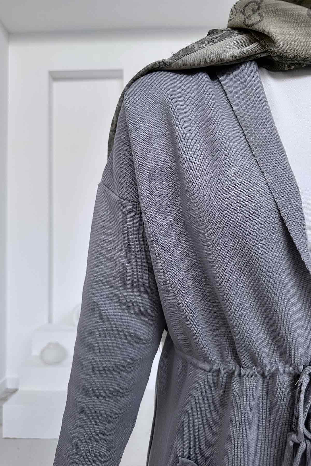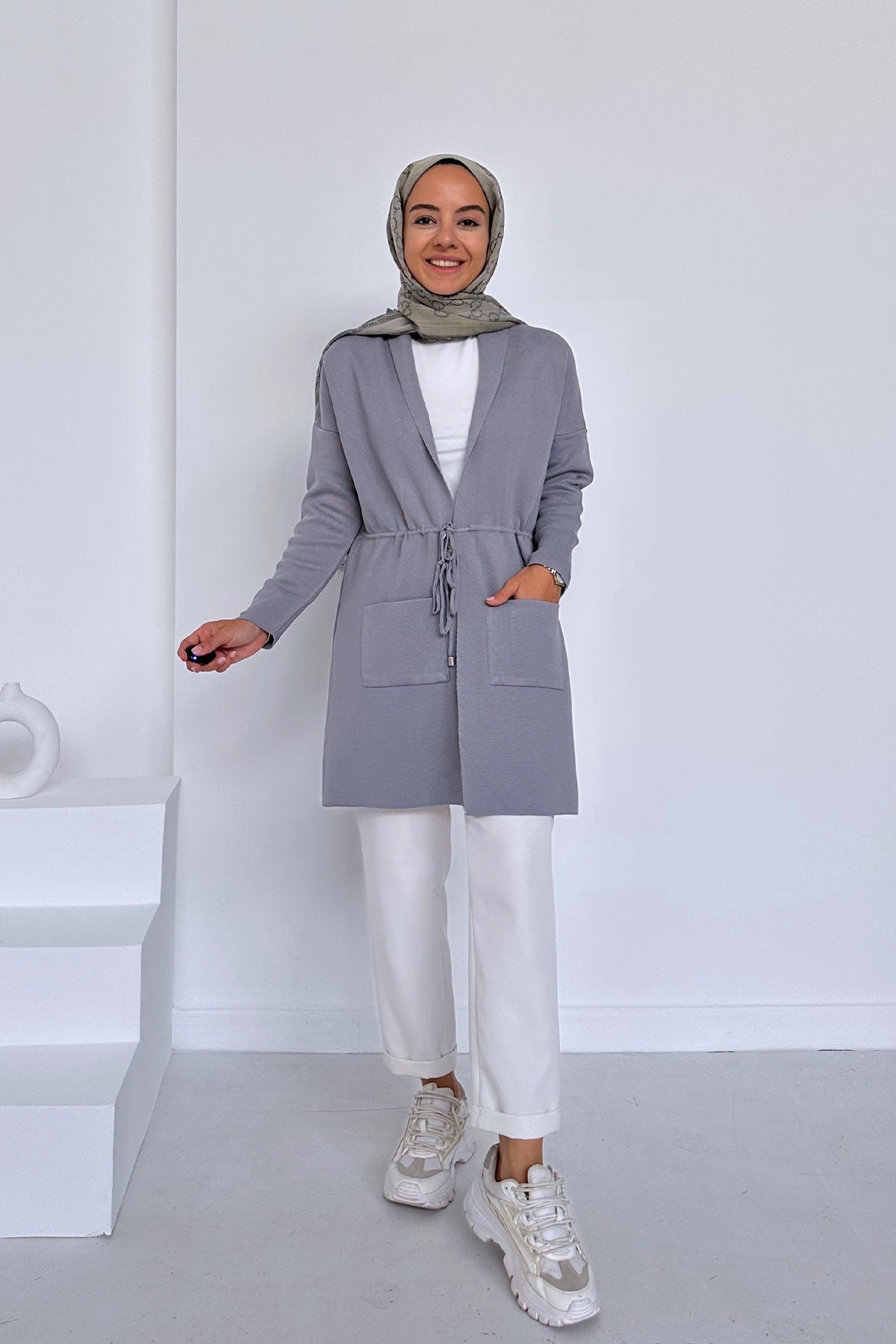 Waist-Tied Double Pocket Mercerized Cardigan - Grey